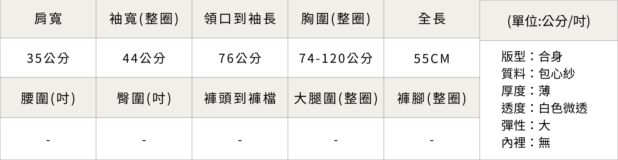 胸圍、腰圍、臀圍皆為一整圈的長度