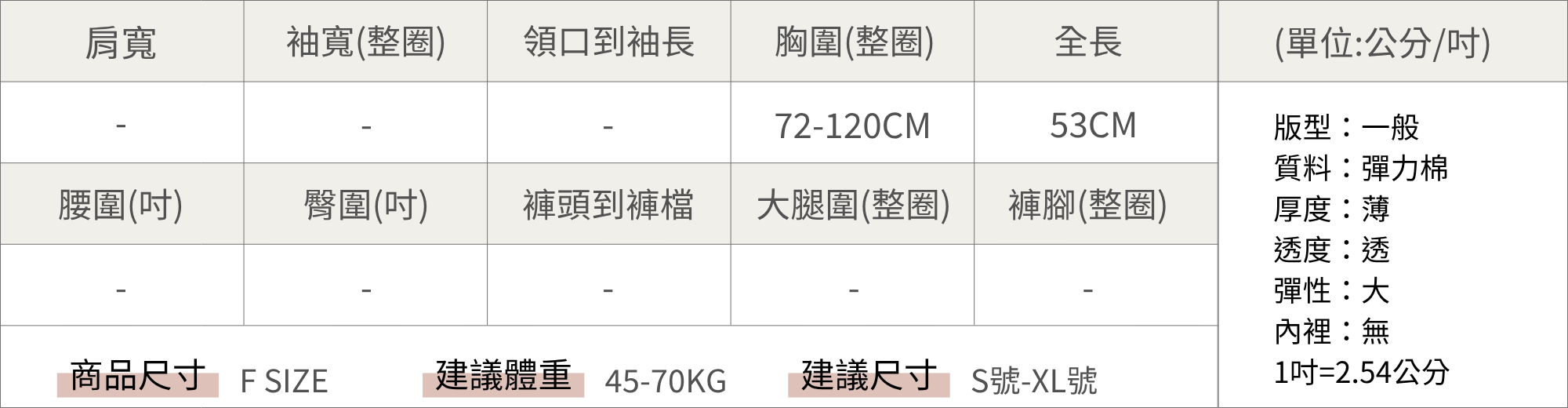 背心胸平量39-60CM 背心長度53CM