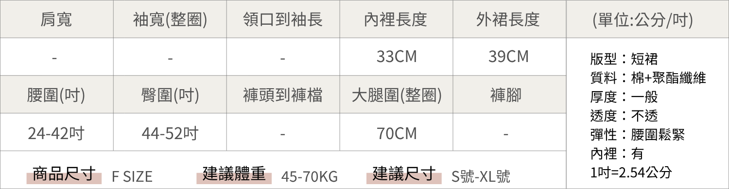 腰圍24-42腰 臀圍44-52吋 裙長39CM