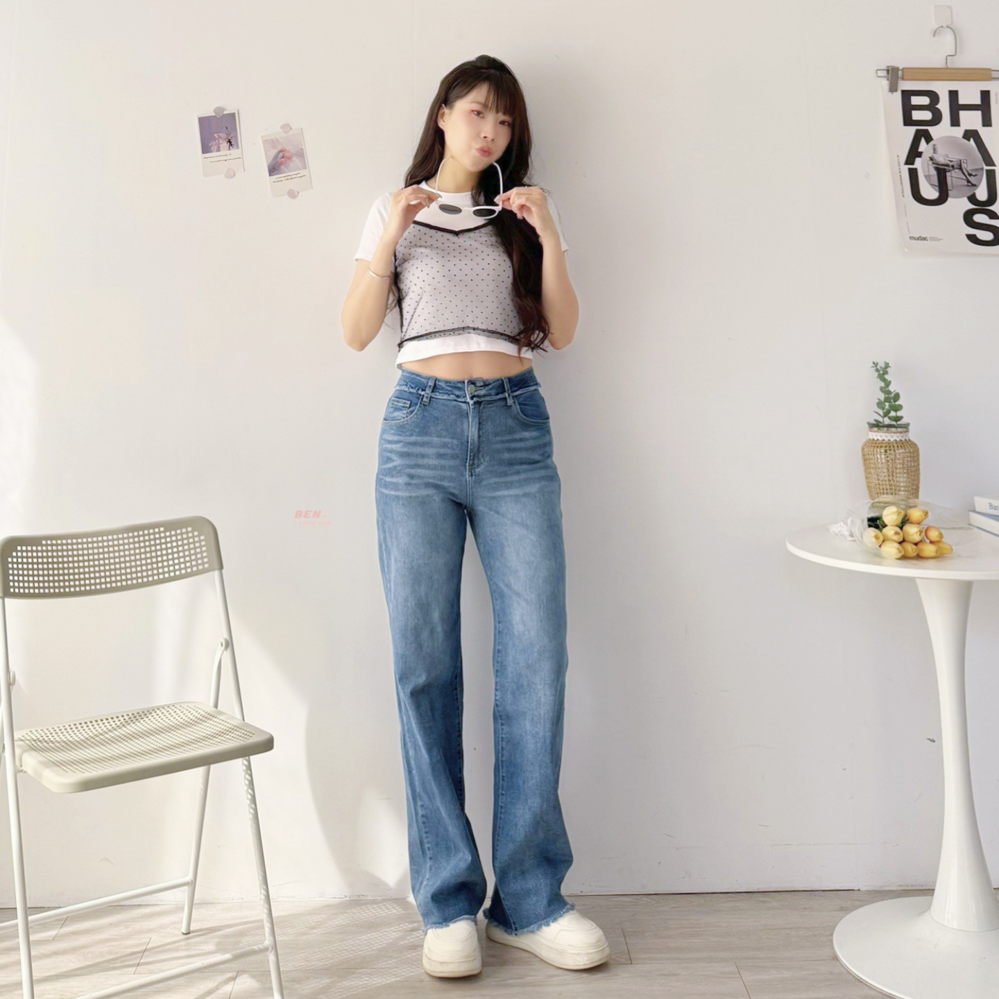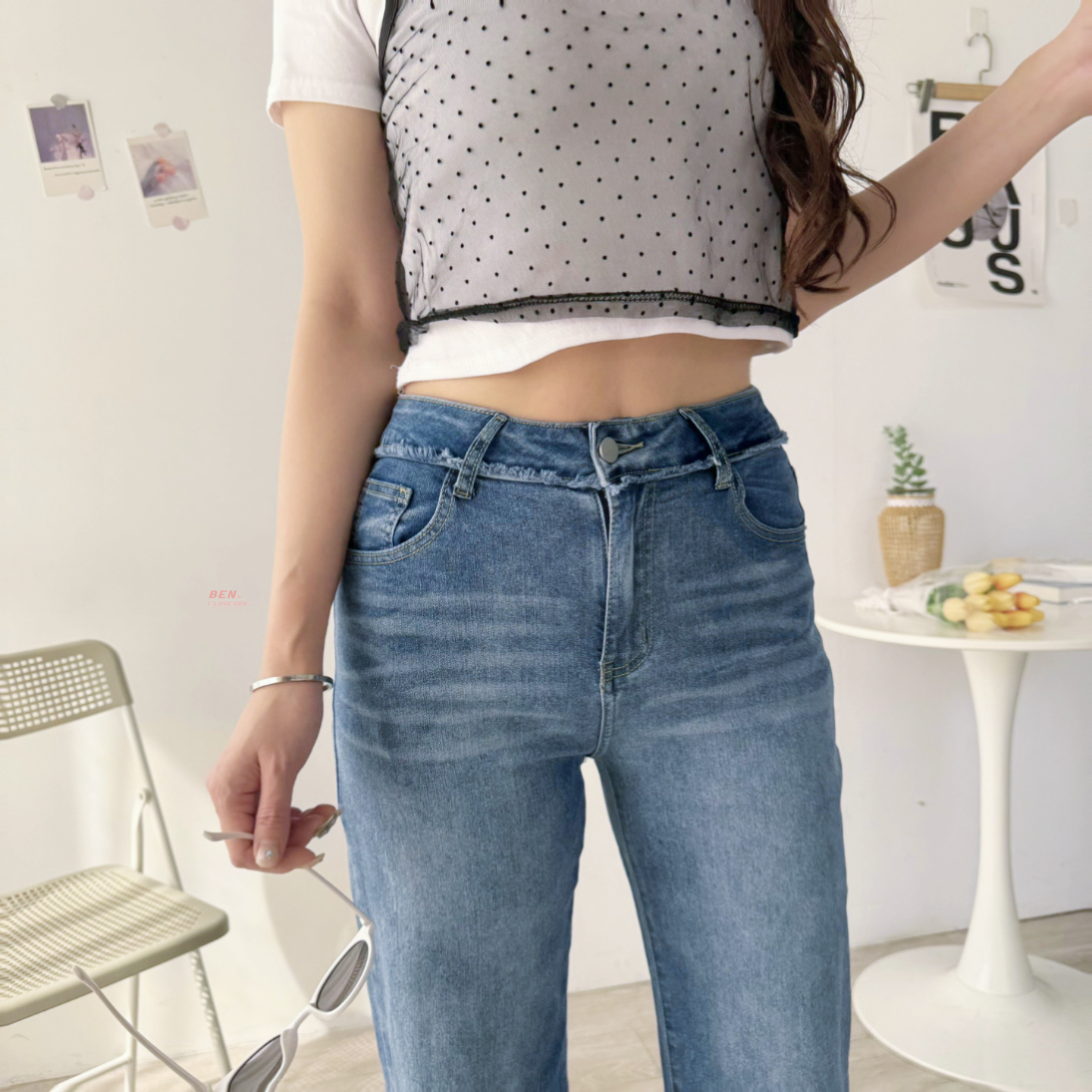今年最強褲型 ♡ 不修邊牛仔彈性寬褲 BEN BEN 【US-19399】現貨